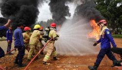 Pegawai Baru Dinas Damkar Lutim Latihan Simulasi Pemadaman Api