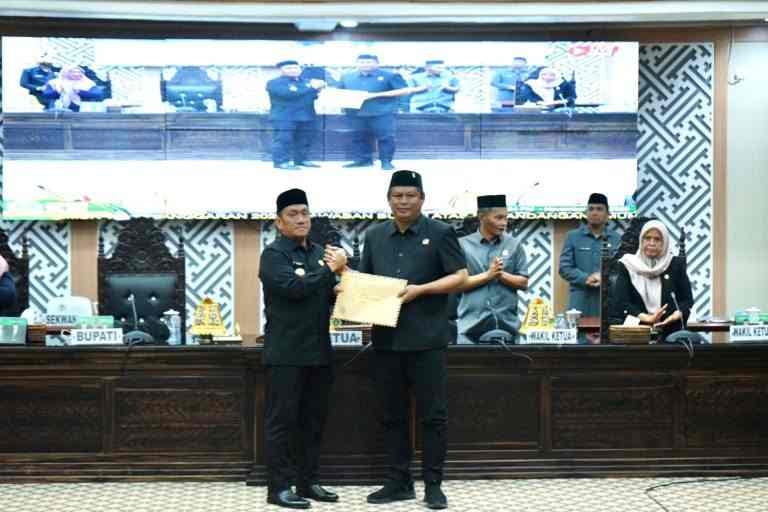 Dalam sambutannya, Bupati Irwan menyampaikan apresiasi dan terima kasih kepada seluruh fraksi DPRD atas pemandangan umum yang telah disampaikan terhadap kedua Ranperda tersebut.