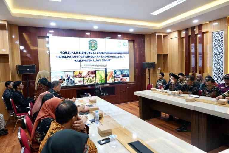 “Maksud dilaksanakannya sosialisasi dan rakor Teknis ini adalah untuk penyamaan persepsi dan pemahaman terhadap Dasar Pembentukan Tim, Tugas Tim dan Agenda Kerja Tim Percepatan Pertumbuhan Ekonomi Daerah Kabupaten Luwu Timur,” ungkap Muhajid.