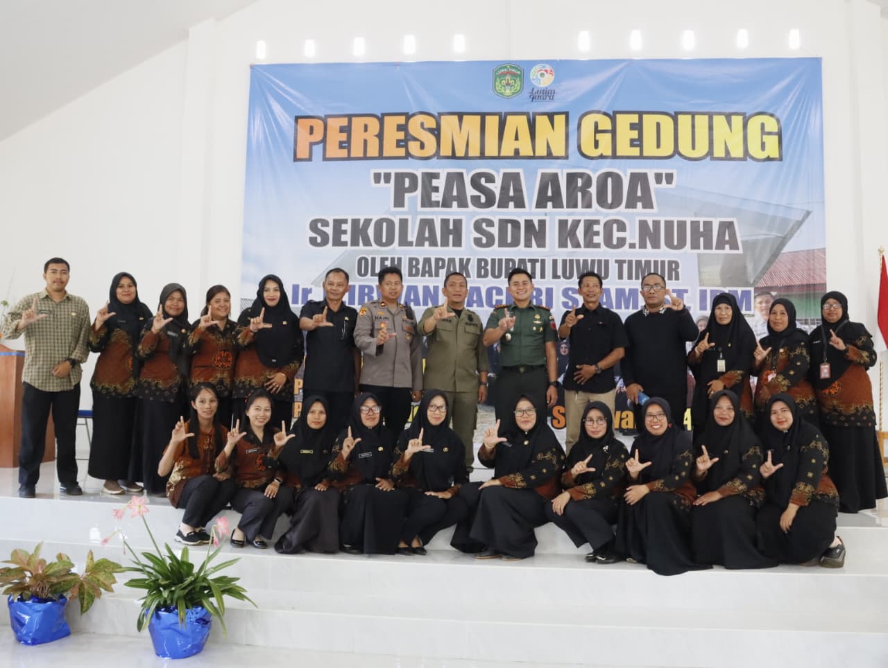 Bupati Luwu Timur, Irwan Bachri Syam meresmikan Gedung Peasa Aroa, merupakan fasilitas bersama yang akan digunakan oleh tiga sekolah, yakni UPT SDN 247 Sorowako, UPT SDN 252 Nikkel, dan UPT 256 Dongi, di Kecamatan Nuha, Kamis (04/12/2025).