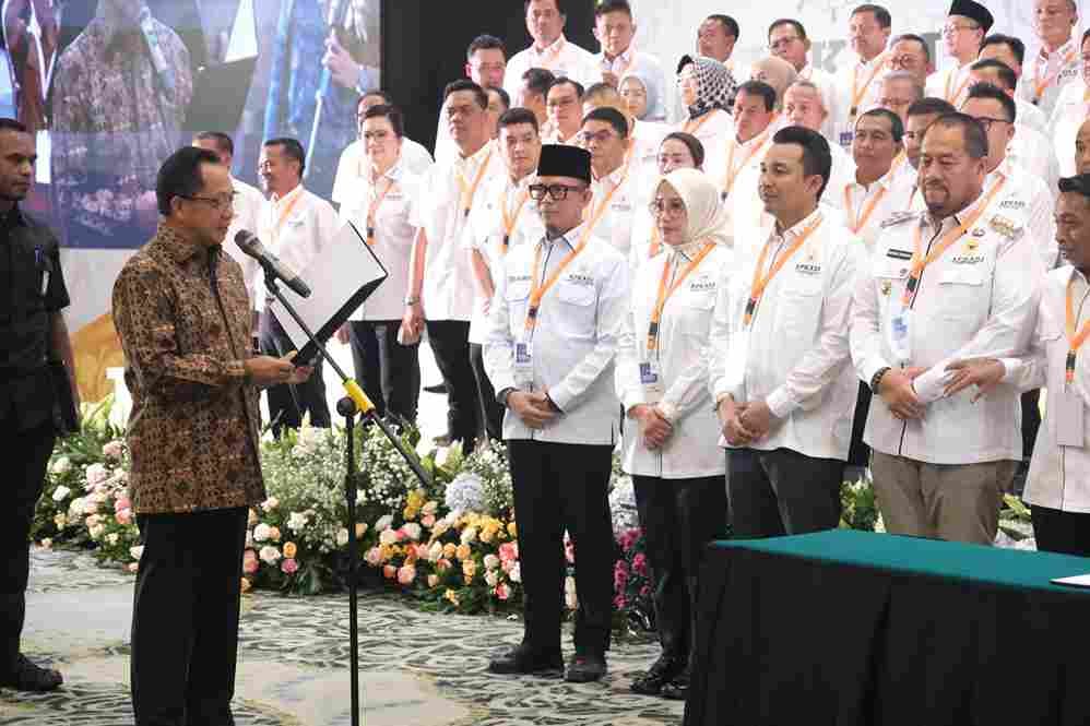 Pengukuhan dewan pengurus APKASI 2025-2030 juga dihadiri langsung Menko Bidang Pangan Zulkifli Hasan, Wakil Ketua DPR RI Cucun Samsurijal.