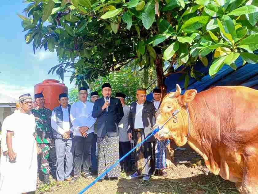 Bupati Lutra, Andi Abdullah Rahim, secara langsung menyerahkan bantuan sapi tersebut kepada panitia kurban setempat.