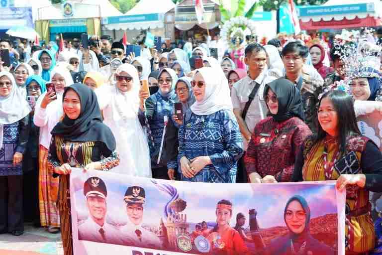 Tidak hanya memberikan dukungan secara moril, Wakil Bupati Luwu Timur juga ikut ambil bagian dalam barisan defile bersama kontingen Luwu Timur. Kontingen tersebut tampil penuh semangat dengan mengenakan beragam busana adat yang berhasil menarik perhatian para penonton.