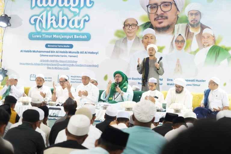 LINISULSEL.COM, LUWU TIMUR – Ratusan jamaah berkumpul penuh semangat di Masjid Babul Khaer, Desa Puncak Indah, Kecamatan Malili, Senin malam (17/11/2025), untuk mengikuti Tabligh Akbar yang menghadirkan seorang ulama besar internasional asal Kota Tarim, Yaman, Al Habib Muhammad bin Al Habib Munsib Ali Al Habsyi.