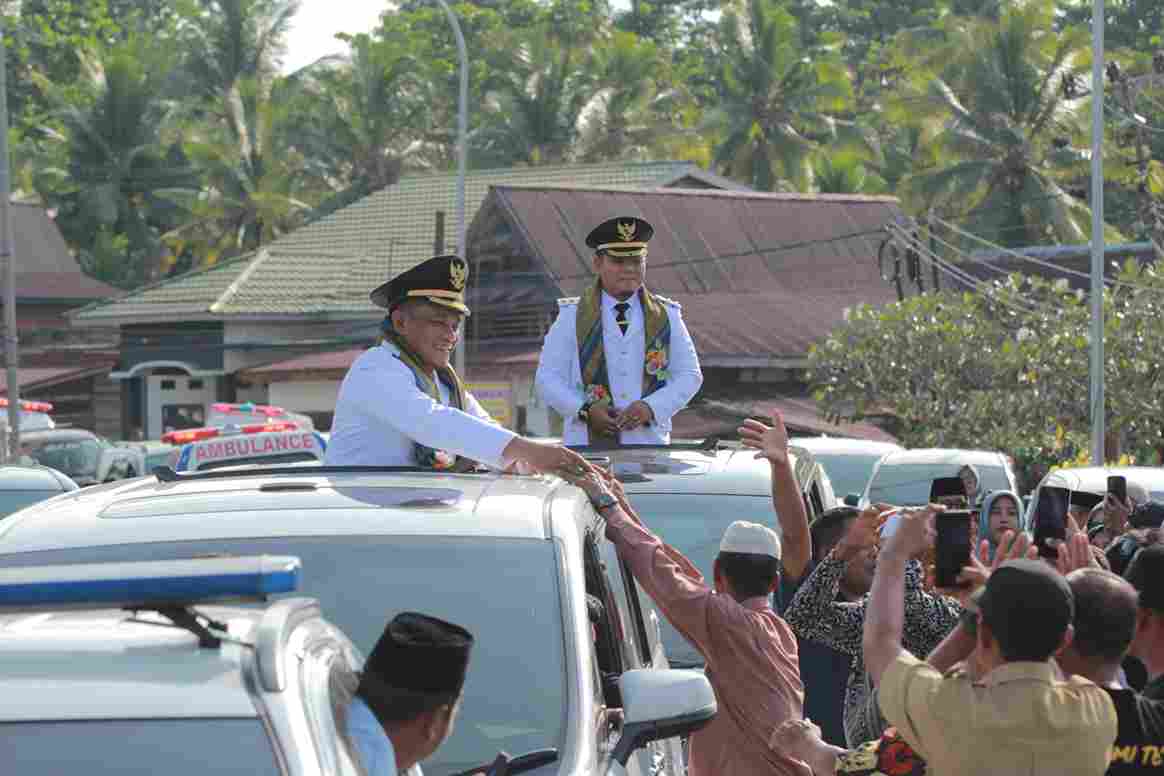 Usai acara penyambutan oleh Sekretaris Daerah, Drs. H. Sulaiman yang ditandai dengan pengalungan kepada Bupati dan Wakil Bupati, rombongan kemudian menuju rumah jabatan Bupati.