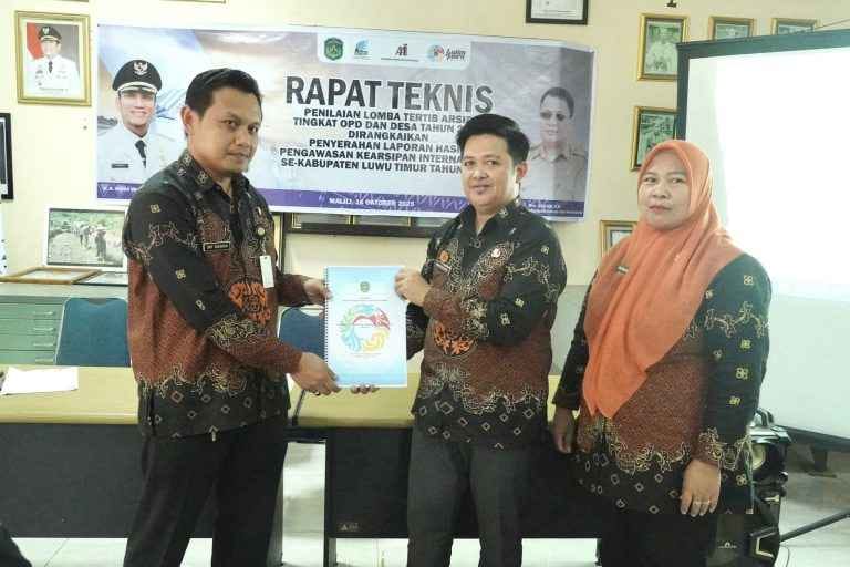 Kegiatan yang turut dirangkaikan dengan Penyerahan Laporan Hasil Pengawasan Kearsipan Internal Tahun 2025 ini, bertempat di Depot Arsip DPK Luwu Timur, Kamis (16/10/2025).