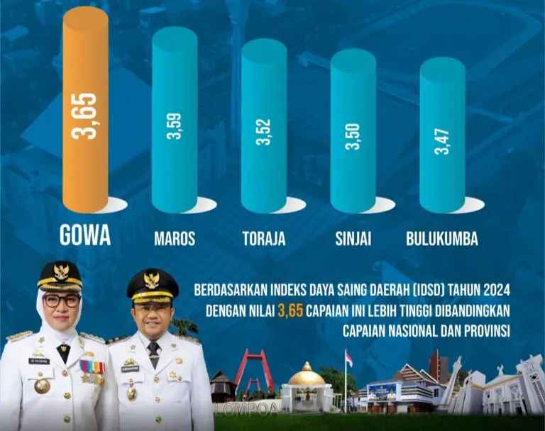 Capaian ini sekaligus menegaskan posisi Gowa sebagai salah satu daerah dengan daya saing tertinggi di tingkat provinsi.