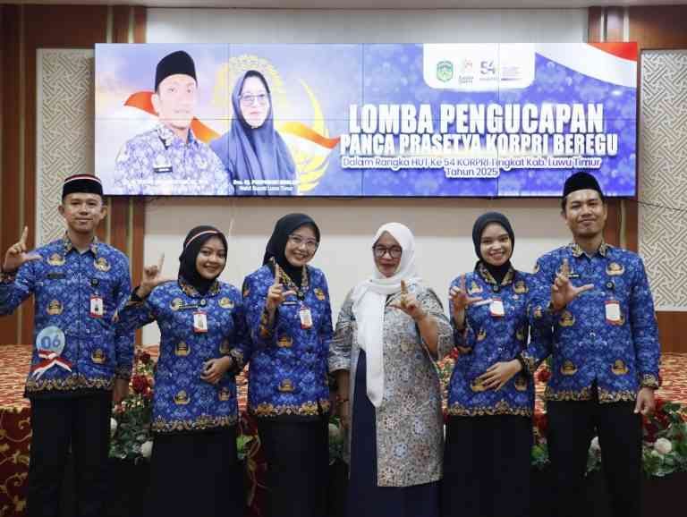 LINISULSEL.COM, LUWU TIMUR – Dalam rangka memeriahkan Hari Ulang Tahun (HUT) ke-54 Korps Pegawai Republik Indonesia (KORPRI), Pemerintah Kabupaten Luwu Timur menggelar Lomba Pengucapan Panca Prasetya KORPRI Beregu yang berlangsung di Aula Sasana Praja Kantor Bupati Luwu Timur, Jumat (28/11/2025).
