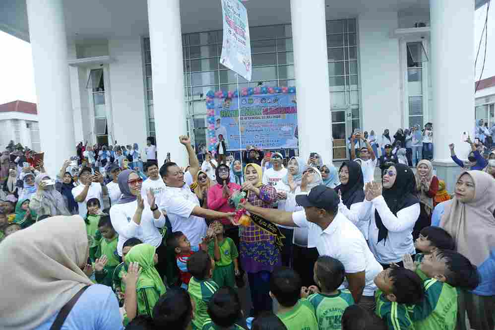 Ribuan anak memadati halaman belakang Kantor Wali Kota Palopo, mereka antusias mengikuti senam Anak Indonesia Hebat.