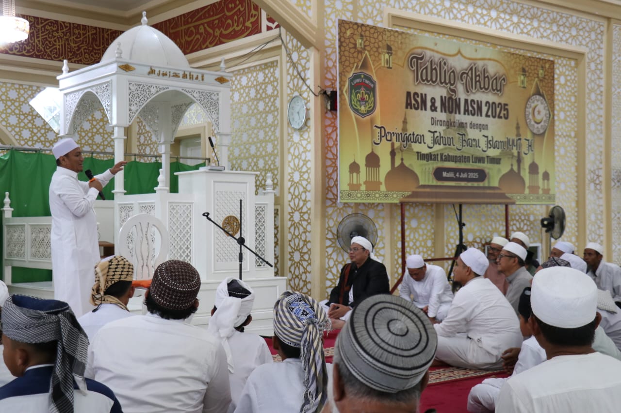 LINISULSEL.COM, LUWU TIMUR – Bupati Luwu Timur (Lutim) Irwan Bachri Syam bersama ratusan Aparatur Sipil Negara (ASN) dan Non ASN Lutim berkumpul dalam Tabligh Akbar 2025 yang dirangkaikan dengan peringatan Tahun Baru Islam 1447 Hijriah tingkat Kabupaten.