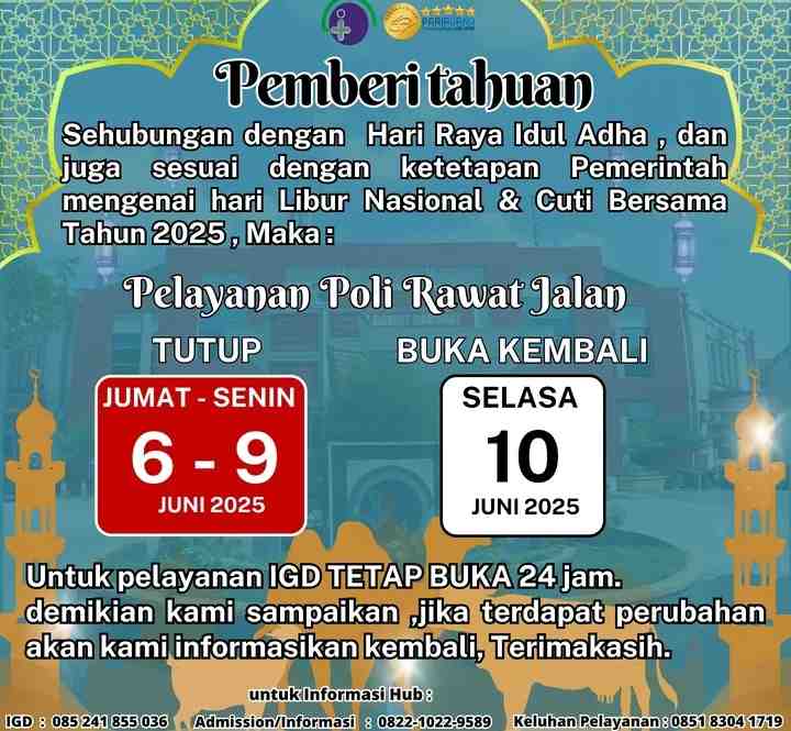 Hal tersebut sehubungan dengan Hari Raya Idul Adha dan juga sesuai dengan ketetapan Pemerintah mengenai hari Libur Nasional dan cuti bersama Tahun 2025.