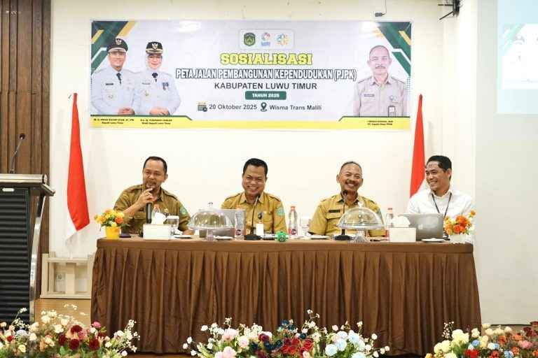 LINISULSEL.COM, LUWU TIMUR – Dalam upaya menetapkan arah kebijakan dan strategi pengelolaan kependudukan yang terpadu dan berkelanjutan, maka Pemerintah Kabupaten Luwu Timur melalui Dinas Pengendalian Penduduk dan Keluarga Berencana (DPPKB) menggelar Sosialisasi Penyusunan Peta Jalan Pembangunan Kependudukan (PJPK) Tahun 2025–2029.