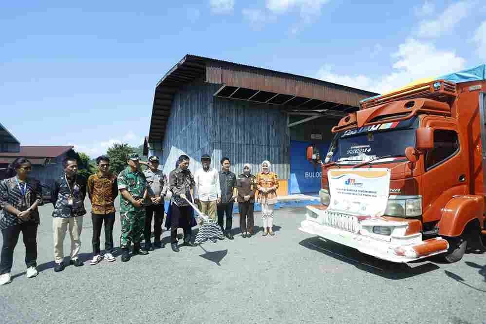 LINISULSEL.COM, PALOPO – Penjabat (Pjk) Walikota Palopo, Firmanza DP menoghadiri Pelepasan Penyaluran Bantuan Pangan Beras Provinsi Sulawesi-Selatan Tahun 2025 di Gudang Bulog Balandai Kota Palopo, Kamis 24 Juli 2025.