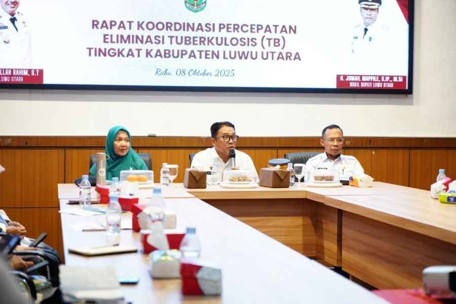 LINISULSEL.COM, LUWU UTARA – Pemerintah Kabupaten Luwu Utara menggelar Rapat Koordinasi (Rakor) Percepatan Eliminasi Tuberkulosis (TBC) di Ruang Rapat Command Centre, Rabu (8/10/2025).