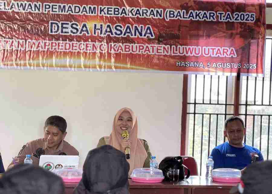 LINISULSEL.COM, LUWU UTARA – Camat Mappedeceng, Nuranifah, secara resmi membuka kegiatan Pelatihan Barisan Relawan Pemadam Kebakaran (Balakar) di Desa Hasana, Kecamatan Mappedeceng, Selasa (5/8/2025).