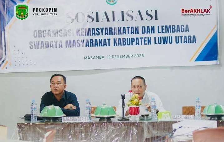 LINISULSEL.COM, LUWU UTARA – Sekretaris Daerah Kabupaten Luwu Utara Jumal Jayair Lussa membuka Sosialisasi Organisasi Kemasyarakatan (Ormas) dan Lembaga Swadaya Masyarakat (LSM) Kabupaten Luwu Utara di warkop Daeng Azis Masamba, Jumat (12/12/2025)