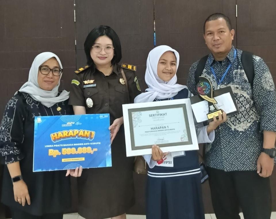Dwi Maulani berhasil meraih Juara Harapan I dalam Lomba Pidato Bahasa Inggris bertema Anti Korupsi, yang diselenggarakan dalam rangka peringatan Hari Anti Korupsi Sedunia (HAKORDIA) 2025. Kegiatan tersebut mengusung tema “Generasi Pelajar Anti Korupsi (GALAKSI)” dan berlangsung di Kantor Kejaksaan Tinggi Sulawesi Selatan, Makassar, pada Selasa (09/12/2025).