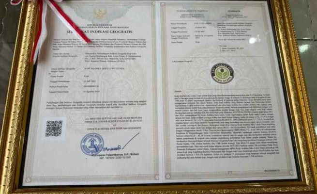 Kopi Arabika Seko Resmi Terima Sertifikat Indikasi Geografis dari Kemenkum-HAM