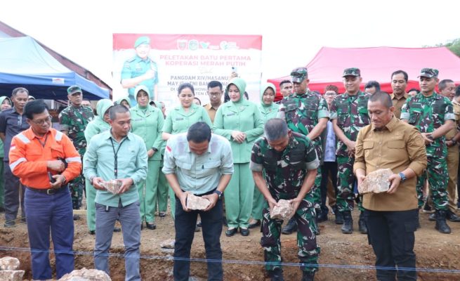 Bupati Lutim dan Pangdam Hasanuddin Letakkan Batu Pertama Pembangunan Gerai Koperasi Desa Merah Putih