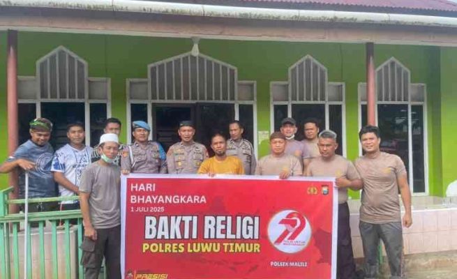 Polsek Malili dan Komunitas Bersih-bersih Masjid Laksanakan Bakti Religi