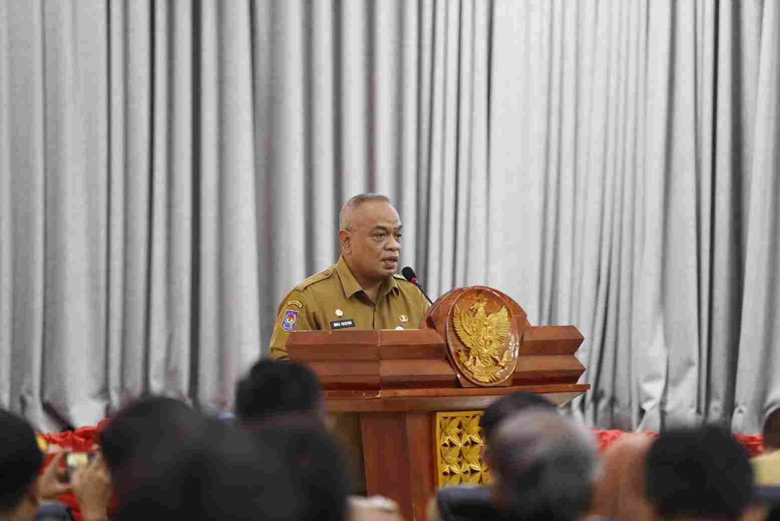 Kepala Dinas Pertanian, Peternakan dan Perkebunan Palopo, Muh Ibnu Hasyim memberikan sambutan saat Musyawarah Tudang Sipulung musim tanam kedua April – September (ASEP) tahun 2025 yang dilaksanakan di ruang pertemuan Ratona kantor Walikota Palopo, Selasa 24 Juni 2025.