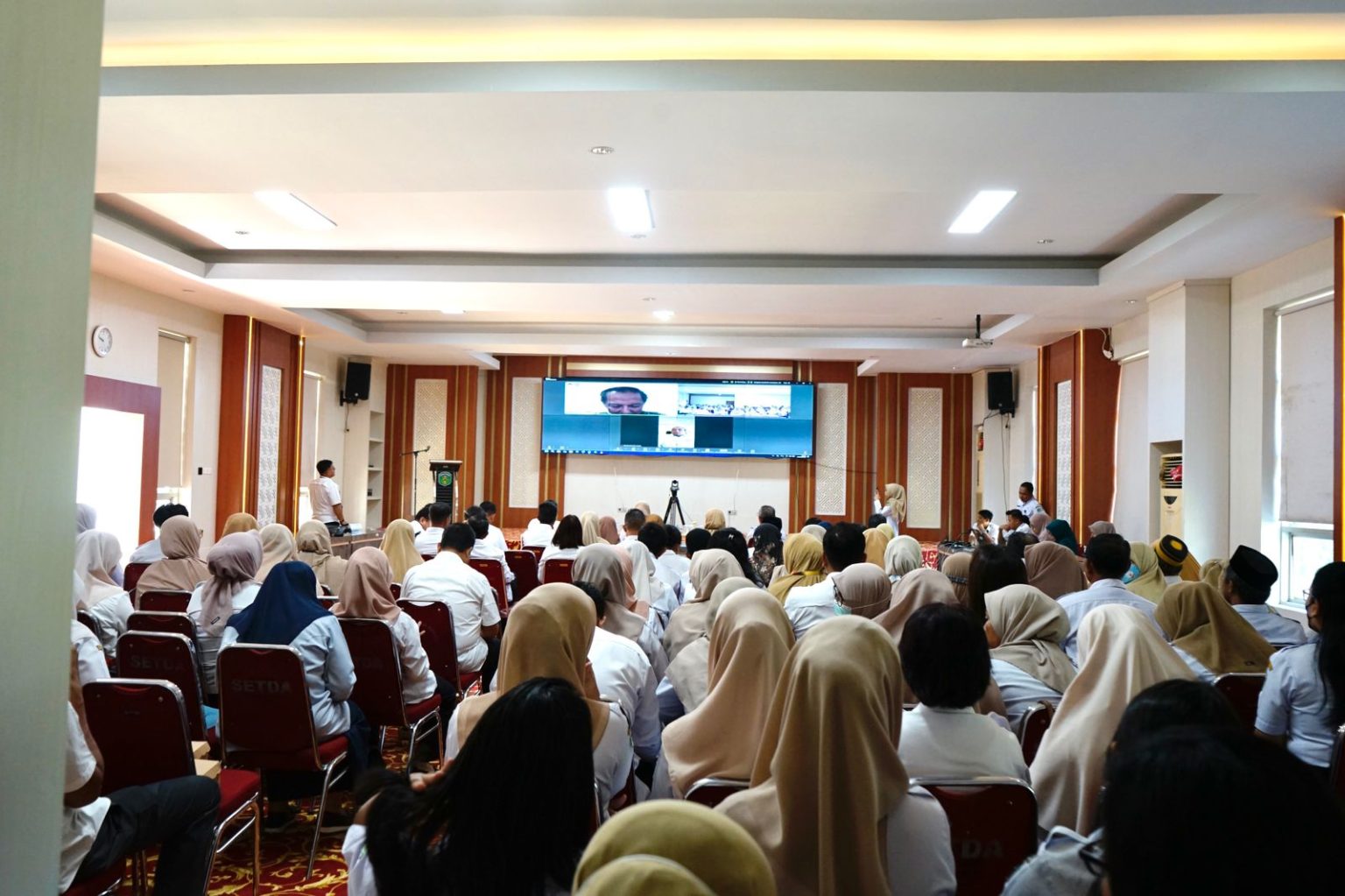 Sementara itu, di Aula Sasana Praja turut hadir Ketua Forum Kabupaten Sehat, Dra. Hj. Puspawati Husler, Sekretaris Daerah, H. Bahri Suli, Ketua Tim Pembina Kabupaten Sehat, Drs. Dohri Ashari, jajaran OPD terkait, Koordinator Forum Kabupaten, anggota Forum Kabupaten, para Kepala Puskesmas, para camat dan kepala desa se-Kabupaten Luwu Timur, serta pihak terkait lainnya.