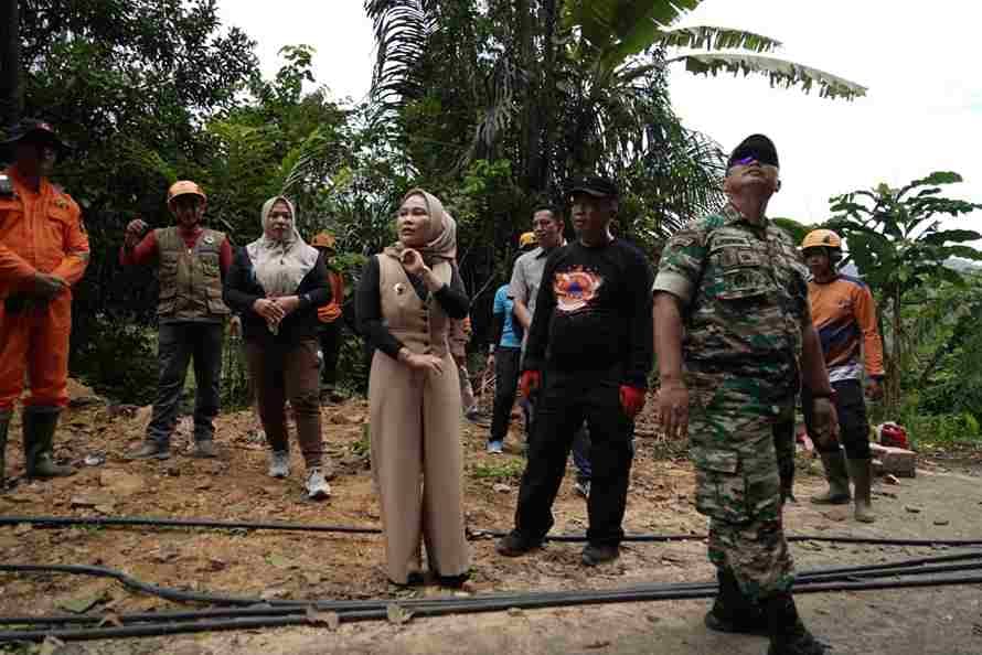 Wali Kota Palopo, Naili Trisal meninjau langsung pembukaan akses jalan yang tertimbun material longsor di Km 11 Kelurahan Latuppa, Kecamatan Mungkajang, Jumat (31/10/2025).